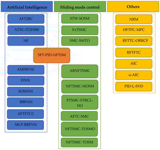 In [45], a system consisting of combined non-singular fast terminal sliding-mode control (NFTSMC) and a high-order sliding-mode (HOSM) controller was proposed. The presented control system also used an algorithm based on time delay estimation (TDE) for fault estimation. The results described in the work showed that fast terminal sliding-mode control (FTSMC) and NFTSMC systems have faster convergence compared to the non-singular terminal sliding-mode control method. FTSMC systems may encounter the problem of singularity during operation. However, the work shows the advantage of the NFTSMC system over the above-mentioned ones. Other methods using both active fault-tolerant control systems (AFTCS) and passive fault-tolerant control systems (PFTCS) were also rated in the paper.