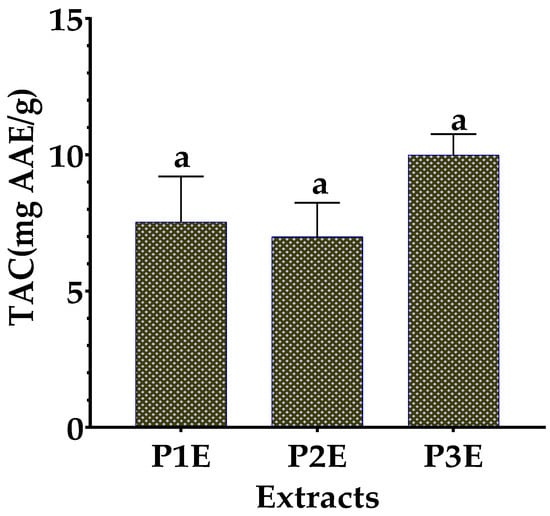 TAC values of PE1, PE2, and PE3; AAE: ascorbic acid equivalents; a: the difference between the three samples was not significant (p > 0.05).