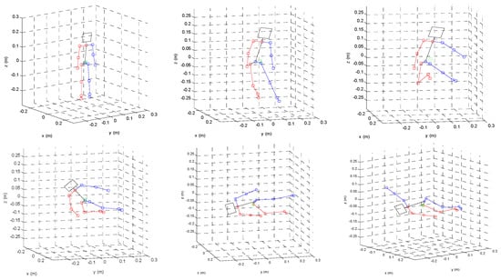 Figure 13 shows various 2D poses and the corresponding 3D poses reconstructed from the 2D poses using the camera images and MPP. It can be seen that the reconstructed humanoid models are similar to the actual 3D poses owing to the loss function that reflects many conditions related to the stable poses.