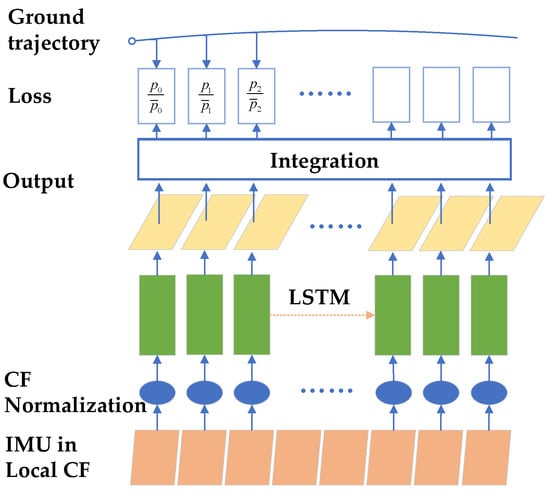 The general loss function takes the mean squared difference as the loss function; however, this effect is not good. In this paper, based on the inherent characteristics of IMU data, the location loss function is proposed as follows in Figure 6: