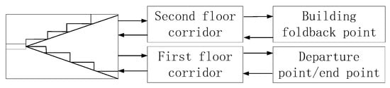 (3) Building experiment. Figure 13 shows the scene of the building. Experimenters wear positioning equipment along the building’s pre-determined trajectory from the starting point, back to the starting point after turning back into the building, that is, the starting point and the endpoint coincide, during which they have to pass up and down the stairs, the total length of the trajectory is 210 m, and the schematic diagram of the building experiment is shown in Figure 14. Figure 15 shows the positioning trajectory of the experimental run; from the running trajectory, the starting point and the starting point nearly coincide, the offset is about 0.983 m, and the positioning accuracy error is 0.47%.