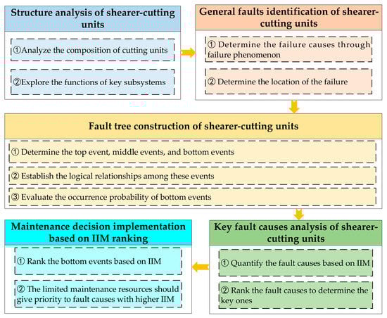 To better analyze the key fault of shearer-cutting units based on the IIM, the process of the fault analysis method can be summarized as follows, and the framework of the fault analysis method based on IIM is shown in Figure 1.