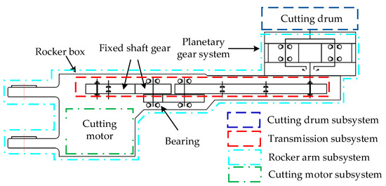 Against the background of carbon peak and carbon neutrality, the important role of coal in China’s energy resource structure determines that coal will remain the most basic energy resource for a long time in the future, which provides a guarantee for economic and social development [1]. Shearers are important mechanical equipment for intelligent and efficient mining, playing an irreplaceable role in coal production. The shearer-cutting unit is the key component of the shearer, including the cutting arm, the drum, the transmission system, and the cutting motor. However, the shearer-cutting unit is also the most susceptible to failure, which may cause serious economic losses and even casualties [2]. Coal enterprises urgently need to solve the problems of low mining efficiency and long downtime maintenance time caused by shearer-cutting failure. Therefore, it is of great significance to study the fault analysis method of shearer-cutting units.
