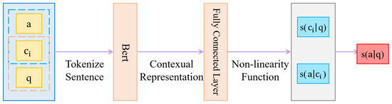 In Bert-RC, we use the transformer-based model Bert [7], a pre-trained model over a massive corpus. In essence, the vector representation of the words is calculated from the context and can represent the polysemy of the words, so the semantic representation ability of sentences is enhanced. Bert adopts a bidirectional transformer as a feature extractor and adopts a self-attention mechanism to model the text. In Bert, the correlation between each word and another word in the sentence is calculated [27]. The correlation between words reflects the relevance and importance of different words. Then, these relationships are used to adjust the importance (i.e., weight) of each word, and a new semantic representation is learned, which includes not only the word itself but also the relation between the words. Compared with simple word vectors, BERT can learn more comprehensive semantic expressions.