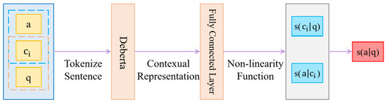 As shown in Figure 3, DeBerta-RC shares the same architecture as Bert-RC. The difference between Bert-RC and DeBerta-RC is that DeBerta-RC computes the relevance functions ( and ) directly with Deberta, the formulas are shown following:
