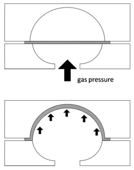 - Enikeev, F.U.; Kruglov, A.A. An analysis of the superplastic forming of a thin circular diaphragm. Int. J. Mech. Sci. 1995, 37, 473–483. [Google Scholar] [CrossRef]