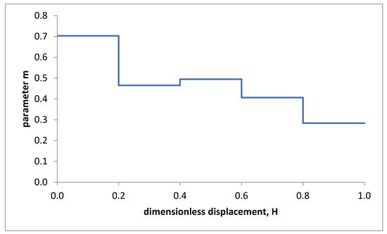 The recording of these curves allowed determining, through Equation (4), the parameter m for different ranges of H. Figure 8 shows the obtained m–H curve.