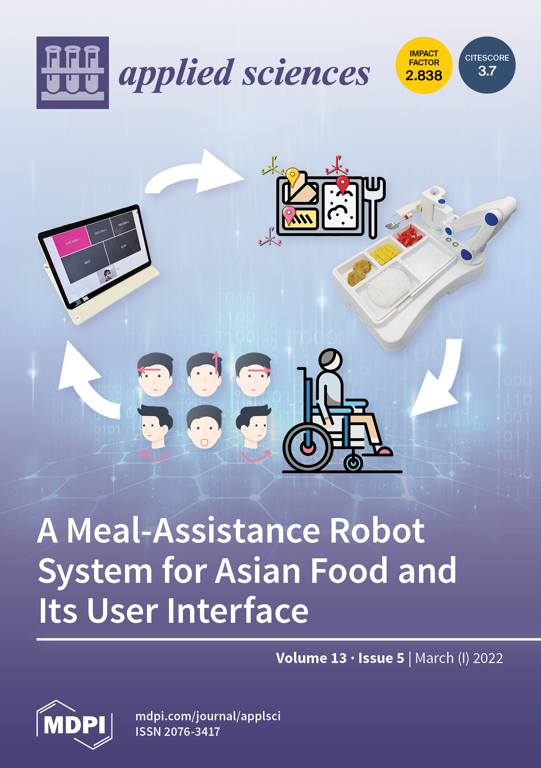 Cover Story: Eating is considered as one of the most important activities of daily living (ADL). However, with the aging population and the rapid spread of chronic diseases, many patients require assistance from family members or professional caregivers to eat. As a result, various types of meal assistance robots (MAR) have been developed and introduced to address this issue. In this study, we propose a MAR system suitable for an Asian diet, which includes dishes that are easy to handle with chopsticks and soup. The system comprises an eating utensil that can alternate chopsticks and spoons and a food acquisition point estimator that recognizes the food area from the plate image and calculates the best location to acquire each dish. Additionally, we have developed a contactless user interface based on facial recognition to accommodate users with physical limitations. View this paper