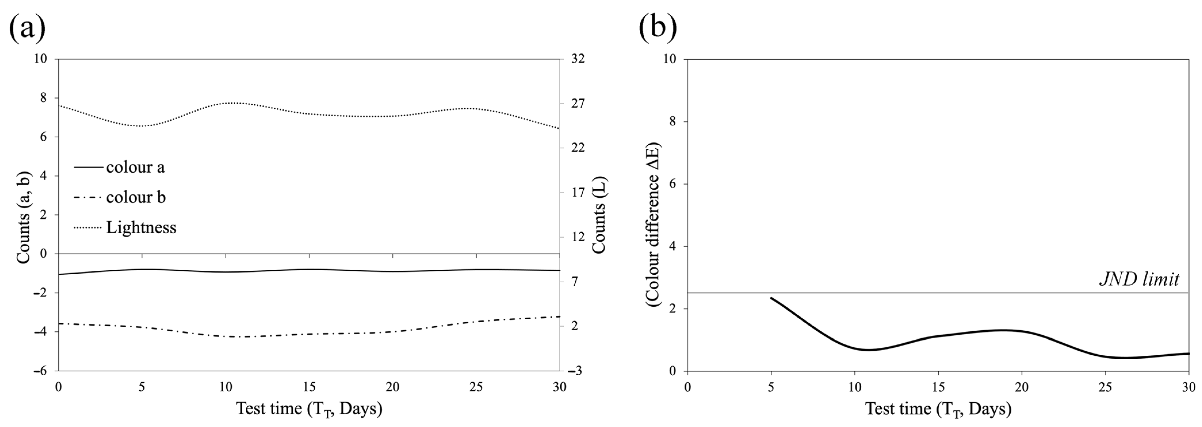 - ASTM D3424-11; Standard Practice for Evaluating the Relative Lightfastness and Weatherability of Printed Matter. ASTM International: West Conshohocken, PA, USA, 2001.