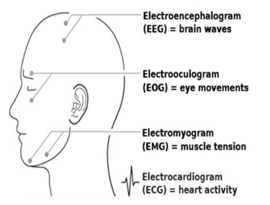 The physical distribution of drozy polysomnography signals on the driver’s head.