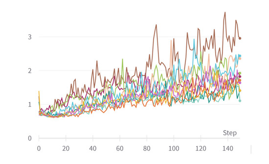 Learning curves (loss) of the iterations of the hyperparameter optimization.