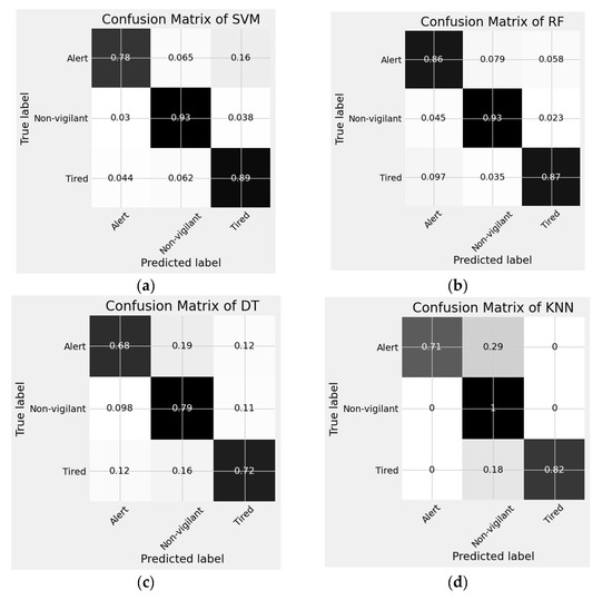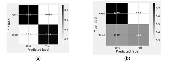 Another approach is proposed by Luo et al. [23]. They used a combination of adaptive scaling factor and entropy characteristics using two channels of EEG signals (Fp1 and Fp2). They achieved 40% on a two-stage classification of driver fatigue. In addition, the EEG toolbox was also used to filter out unwanted EOG activity. This task enhanced the system’s performance with a classification accuracy of 98%.