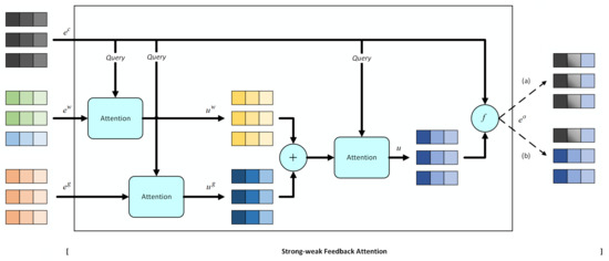 The strong–weak feedback attention uses the strong information to guide the moderate information and weak information, and then integrate the moderate information and weak information back to the strong information. The output of it is called multi-granularity word information. The details are shown in Figure 2.