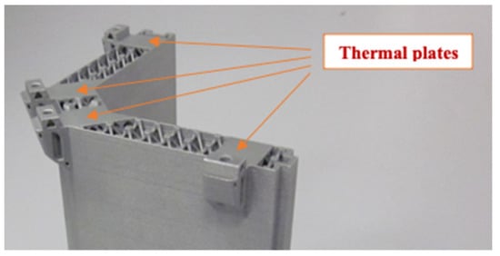 The module is characterized by many thermal plates (Figure 7). They are necessary to allow thermal communication between stacked structures. Their functional surface is perpendicular to the wall, hence they must be fabricated horizontally. The junction point wall is 25 × 11 × 1 mm3 and requires a support structure inaccessible for removal in the post-processing.