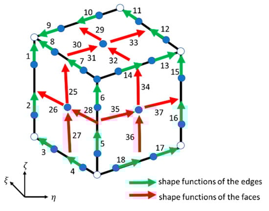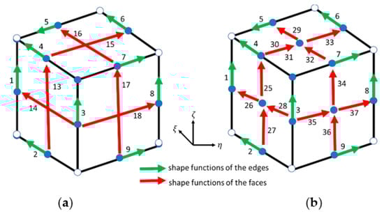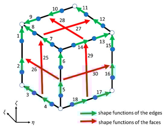where denotes the total number of edges in the edge element. For the first-order edge element, the ; for conventional serendipity and Lagrange-type second-order hexahedral elements, and , respectively.