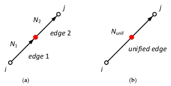Two-edge unification: (a) edge before unification; (b) edge after unification.