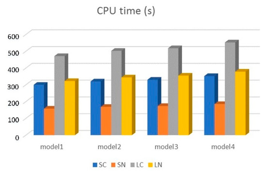 Comparison of CPU time using different elements. Model 1 = bathymetry + isotropic sediment; model 2 = bathymetry + isotropic sediment + reservoir; model 3 = bathymetry + anisotropic sediment; model 4 = bathymetry + anisotropic sediment + reservoir.