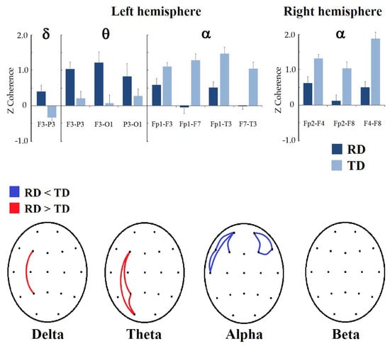 - Dhar, M.; Been, P.H.; Minderaa, R.B.; Althaus, M. Reduced interhemispheric coherence in dyslexic adults. Cortex 2010, 46, 794–798. [Google Scholar] [CrossRef]