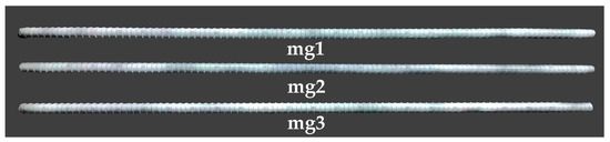 The test was conducted in parallel, taking three bolts with the same conditions to ensure that the test conditions (including temperature, humidity, test parameters, and testers) were consistent and to prevent the generation of accidental errors. The test was conducted with mining left-hand threaded steel bolts. Figure 3 shows a photo of the test bolts, and the specific parameters are listed in Table 1.