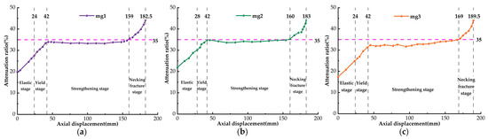 Stress wave energy attenuation ratio of bolt tension process. (a) mg1; (b) mg2; (c) mg3.