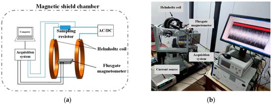 Dynamic magnetic measurement can be applied to geological structure analysis, resource exploration, magnetic anomaly detection, geomagnetic navigation, and other fields and is usually realized by attaching to a mobile carrier [1,2,3]. The three-axis fluxgate magnetometer is the main sensor for mobile magnetic measurement. Its measurement accuracy is key for magnetic measurement and its applications. The error of the magnetometer consists of static measurement error and dynamic measurement error. The existing error calibration and compensation methods for the three-axis fluxgate magnetometer are all established for static measurement errors [4,5,6,7], including scale factor error, zero bias error, and nonorthogonal error, etc. For static magnetic measurement, the measured magnetic signal is in a relatively stable state and can be considered as an approximately time-invariant “static signal”. Moreover, the existing static compensation methods can realize error correction and complete restoration of the real signal well [8].