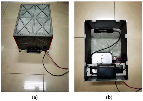 The designed strap-down geomagnetic vector measurement system is shown in Figure 16, and the installation details of the internal instruments are shown in Figure 16b.