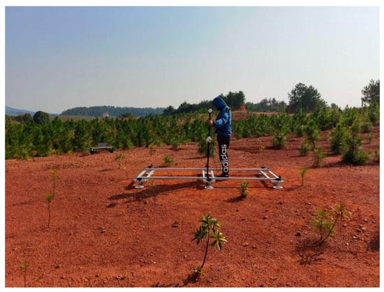 As shown in Figure 18, the geomagnetic total field of the experiment area is calibrated by a proton magnetometer first, which is 48,845.53 nT. The single point stability of the geomagnetic field in this area is better than 1 nT, and the gradient is less than 2 nT, which ensures that this area is suitable for carrying out geomagnetic vector measurement experiments.