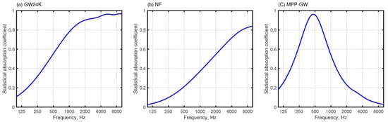 Statistical absorption coefficients: (a) GW24K; (b) NF; and (c) MPP-GW.