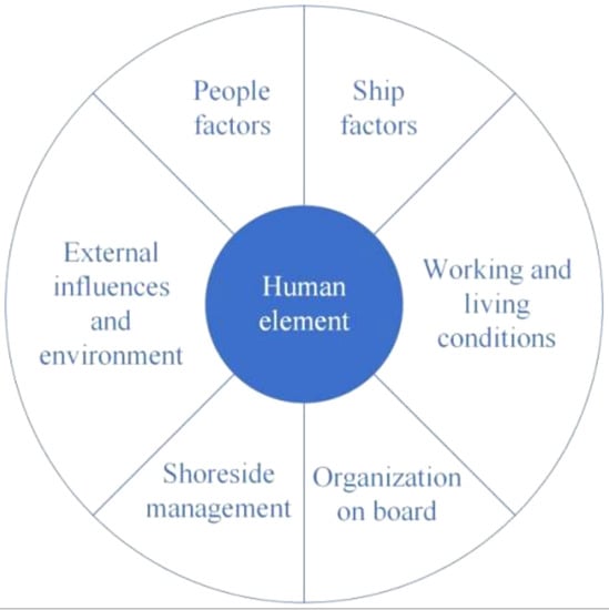 In Resolution A.849(20), the IMO defines the human element as follows [23]: “The human element is a complex multidimensional issue that affects maritime safety and marine environmental protection. It involves the entire spectrum of human activities performed by ship’s crews, shore-based management, regulatory bodies, recognized organizations, shipyards, legislators, and other relevant parties and they need to cooperate to address human element issues effectively”. However, this definition is specific and complex. The British Nautical Institute proposes a simpler and more concise definition [24]: “In the maritime context, the term Human Element embraces anything that influences the interaction between a human and any system aboard ship”. This second definition focuses on entities aboard the ship, whereas the first has a broader scope.