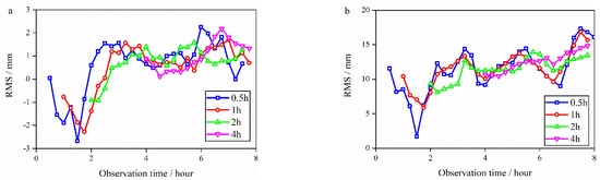 Stability test of GNSS: (a) horizontal stability, (b) vertical stability.