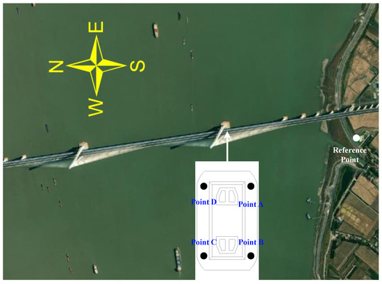 The self-weight of girder and vehicle load are usually transmitted to the bridge tower by stay cable or main cable. To satisfy the stability of the vehicle and the rational dis-tribution of the cable force, the bridge tower has been designed as higher tower and larger cross-section in engineering [1]. As the deadweight of the structure increases, it can easily deform the foundation of the bridge tower and affect the vehicle riding comfort. In addition, the foundation settlement of the bridge tower can affect the construction formwork positioning, steel anchor beam positioning, and alignment control of the main girder in the construction process. As a consequence, the continuous monitoring of the foundation displacement of the long-span bridge is the necessary guarantee for the bridge safety during the construction and operation periods. Currently, traditional foundation displacement monitoring is usually adopted for the precise leveling. However, due to various disadvantages of manual monitoring, such as heavy workload, error accumulation, long observation period, etc., especially in the service period of bridges, it is difficult to achieve rapid, accurate, and real-time monitoring of foundation displacement.