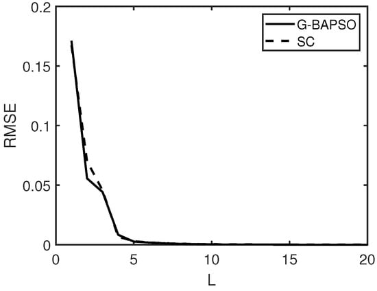 Table 1 shows the comparison results of the minimum values of the function f1 when , and popsize are changing. It can be seen that when , and are fixed, the larger the popsize, the smaller the error. However, the order of magnitude of the error only changes slightly as the population size increases to 75 or 100, and the larger the popsize, the longer the calculation time consumed by the algorithm. Therefore, it is necessary to select an appropriate value that can balance the calculation time and error. Fifty is selected as the population number in solving the minimum value of . When the popsize and are fixed, the smaller the and are, the smaller the error will be. When and drop to 0.3, the magnitude of the error has reached , which is within the acceptable range. Table 2 shows the sensitivity analysis for . As increases from 0.2 to 0.8, the error tends to increase first and then decrease. This is because the BAPSO algorithm plays a major role in the algorithm when is very small, and the gradient descent algorithm plays a major role when becomes large. When the value of is near 0.4, there is a balance between the two, which also verifies the effectiveness of the hybrid algorithm. Table 3 shows the sensitivity analysis for the iterations. As the iterations increases, the error of the optimal solution becomes smaller and smaller. However, the more iterations, the greater the time cost. It can be seen that when iterations are 20, the error has reached the magnitude of , which is within the acceptable range.