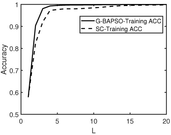 Popsize, , , and the number of iterations have an important influence on the G-BAPSO algorithm. In order to determine the optimal value, Refs. [33,34] suggested that and should be 2. Refs. [35,36] conducted sensitivity analysis on popsize, , and other parameters of acceleration. Based on the benchmark test function f1, the sensitivity analysis of relevant parameters of GBAPSO is shown in Table 1, Table 2 and Table 3, and the parameters used in other experiments also follow this method.