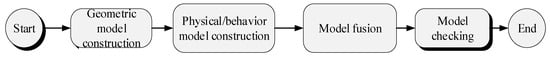 Since the quality of digital twin models is important to their practical applications, researchers have studied digital twin model quality evaluation and optimization. In terms of model quality evaluation, Liu et al. [7] constructed an adaptive evaluation network to analyze, evaluate, and optimize the reliability of the digital twin for a machining system. Zhang et al. [8] proposed a cross-granularity, cross-stage, and cross-disciplinary model lifecycle evaluation method for different phases of digital twin models (e.g., model maintenance and reuse). Tao et al. [9] proposed a set of guidelines and theories for the construction of digital twin models to guide the standardized construction of digital twin models. C. Zhang et al. [10] constructed a digital twin model evaluation index system and provided 29 quantitative calculation methods. L. Zhang et al. [11] performed digital twin construction and evaluation based on the modeling simulation theory and methods. Schluse et al. [12] proposed an adaptability approach for assessing the potential applications of digital twin models. In terms of model optimization, Fang et al. [13] proposed a digital twin geometric model lightweighting method, which reduced geometric errors in the mesh model and improved the frame rate. To reasonably modify the parameters of digital twin models, Vrabic et al. [14] proposed optimizing model output accuracy and control parameters with gradient descent. Li et al. [15] proposed a model simplification method that preserved important mesh details and reduced redundant surfaces, which facilitated the transfer, loading, and browsing of digital twin models. Shu et al. [16] proposed a fast render method for digital twin models in large-scale scenes, which was of great significance for the dynamic real-time performance and interactivity of digital twin systems. Xu et al. [17] proposed a lightweighting method for the digital twin model of bogies and verified the validity of lightweight models in dynamics simulation.