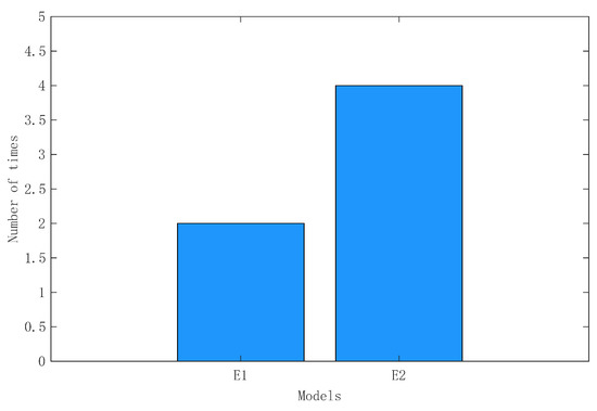 To verify the overall effect of the method in this paper on the quality control and optimization of models E1 and E2, the two models were executed in the workflow to the archive node. The number of times each model was controlled at the original node in the workflow during execution, the number of model optimization solutions obtained, and the optimization effects were counted, as shown in Figure 13, Figure 14 and Figure 15, respectively. Referring to C. Zhang et al. [10], some of the indicators in Figure 15 are calculated as described below.