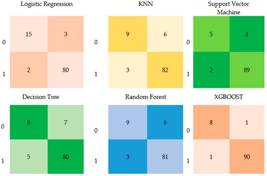 The results precisely state that the average estimation accuracy of both mean and mode methods in identifying numerical and nominal missing values are 97.77% and 96.93%, respectively, which is 5.71% more accurate than the randomized manual verifications. The values in the confusion matrix for all ML algorithms being implemented is shown in Figure 8.