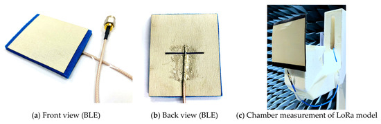 Additionally, a coaxial feeding technique has been developed and tested at these LoRa and BLE frequency bands. The feeding technique is a proximity-fed aperture coupling of the radiating patch with a coaxial cable attached to the ground plane. The effectiveness of the technique in replacing dielectric resonating reflectors in mitigating large back radiations associated with aperture-coupled patch antennas has been proven with measured results using conductive screen-printed antennas.