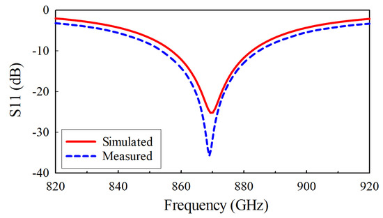 The success of the correlating results was a result of using very precise cutting tools, minimal epoxy application, and low-loss adhesive film. The conductive epoxy adhesive can significantly affect the impedance performance when not applied and cured properly. Figure 10, for instance, shows slightly improved results in the S11 of the measured data compared with the simulated. This among other reasons stated already may also be due to the marginal inaccuracies of representing the dielectric coefficient, conductivity, and loss tangents of the newly created conductive materials used in these models. Further discussions on this are shown in [4,9].