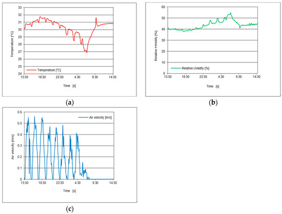 The temperature, relative humidity, and air velocity values are shown in Figure 5.