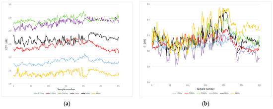 - The frequency bands show similar parametric trends, although with more or less distinctly different amplitudes (EDT and G, as shown in Figure 6a,b);