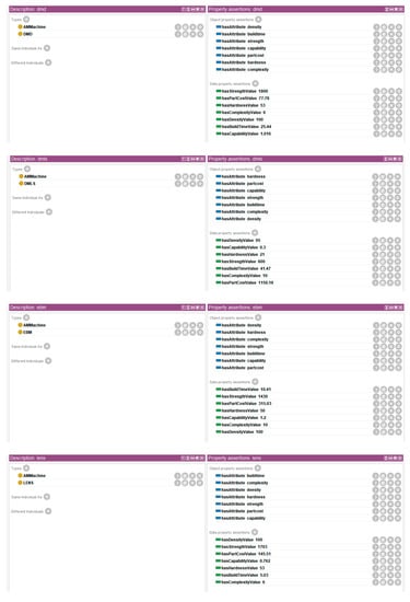 According to the alternative AM machines and attributes of an AM machine selection problem, the values of attributes are automatically generated by the automatic reasoning of the developed DL ontology for AM machine selection.