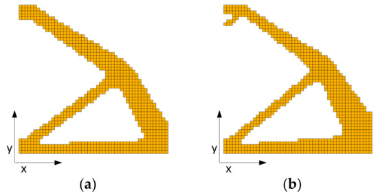 - Matsui, K.; Terada, K. Continuous approximation for material distribution for topology optimization. Int. J. Numer. Methods Eng. 2004, 59, 1925–1944. [Google Scholar] [CrossRef]