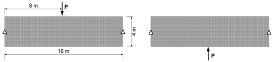 The rectangular structure (16 m × 4 m) applied to two load schemes and support.