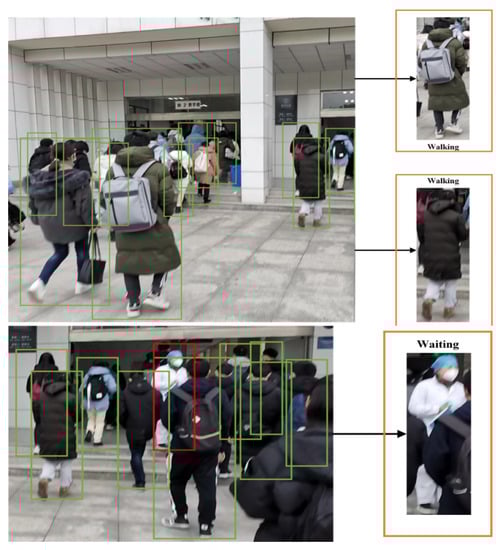 We have the following steps to train our network model, which incorporates the self-attention mechanism. We pretrained the self-attention modules of people and their body parts to ensure convergence. We will verify the pedestrian behavior detection in real life. The whole training process includes three steps: pretraining LSTM network, extracting behavior features through the self-attention mechanism, and finally sending the feature layer to the network. The importance of each person in each frame is generated by the self-attention mechanism, and then the behavioral characteristics of each person are summed according to the weight, the weighted features are input into the LSTM network, and the output features are classified to jointly predict the detection, individual and collective behaviors. In order to better test the pedestrian’s motion information in the video, we connected the self-attention mechanism with the features extracted from the original RGB trajectory. The parameters of the network are fixed to train the network of individual behavior characteristics. In each time step, we organized the focused character features into subgroups and then input them into the network module to generate context features circularly. These features were cascaded and transmitted to the final LSTM network, followed by the softmax classification layer, which enables the entire context network to be end-to-end trained without any additional coding steps. In all experiments, we set the trade-off parameters to 1 and 2, respectively, and used the random gradient descent of the Adam optimizer to obtain the best parameters of the model. The output dimension was set to 10, and the initial learning rate was set to 0.002.