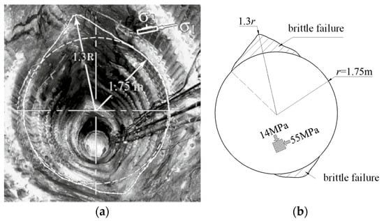 Under the constraints of the United Nations Framework Convention on climate change and carbon emission rights, controlling carbon emissions has become a precondition and consensus of development all over the world. Hence, the development of alternative clean energy sources, such as hydropower, is of great significance to the energy structure. However, areas abundant in hydropower energy often have a significant elevation drop; due to the influence of topography, large-scale underground rock mass excavation is required []. As the burial depth increases, tectonic movement of the crust and rock stratum generates a tectonic stress field, which, when combined with the gravitational stress field, can result in extremely high in situ stress. For instance, the diversion tunnel of the Jinping II hydropower station has a burial depth of up to 2500 m [], with a measured maximum principal stress of 42 MPa and a predicted maximum principal stress of 72 MPa by deduction. The excavation of high-stress rock mass can easily induce dynamic damage to the surrounding rock and even induce engineering disasters, such as rockburst [,]. The disasters induced by high-stress rock excavation, represented by rockburst, pose significant threats to the safety of workers and construction equipment [,,]. Therefore, ensuring the stability of surrounding rock is crucial for the construction of deep engineering projects.