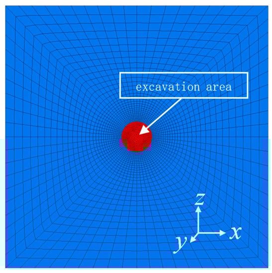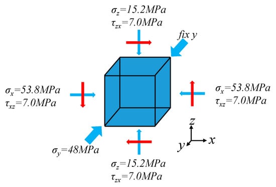 After transforming the principal stress into three directions x, y, and z as shown in Equation (21), the boundary conditions of the numerical model are shown in Figure 4.