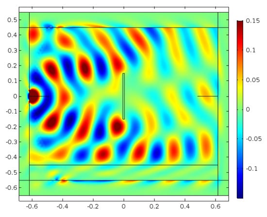 The 2D electromagnetic wave equation governs the propagation in the domain [], as in Equation (1), where is the relative magnetic permeability, E is the electric field, is the free-space wavenumber, is the relative electric permittivity, is the angular frequency, is the conductivity of the material and is the free-space electric permittivity.