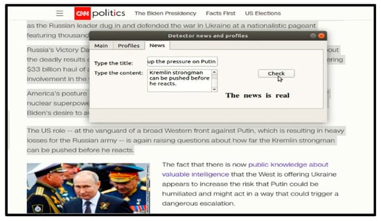 Figure 5 demonstrates that the system was successful in determining whether or not the news was legitimate. The system continues to verify information even if it is unclear whether the news in question is authentic or not. Because the system has a detection accuracy of 98 percent for this kind of check, this indicates that the system was able to determine the status of the news.