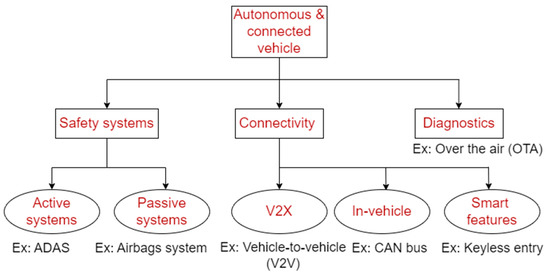 Considering security as a major point, autonomous and connected vehicles are classified into three main areas which are shown in Figure 3.