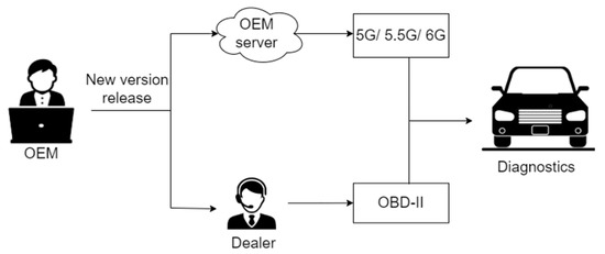 - Nilsson, D.K.; Larson, U.E. Secure firmware updates over the air in intelligent vehicles. In Proceedings of the ICC Workshops-2008 IEEE Interna-tional Conference on Communications Workshops, Beijing, China, 19–23 May 2008; pp. 380–384. [Google Scholar]